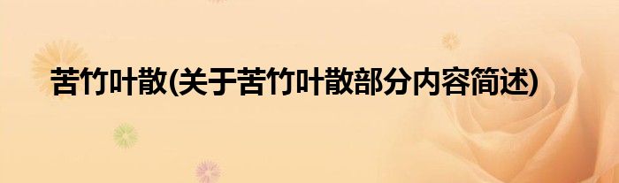 苦竹叶散(关于苦竹叶散部分内容简述)