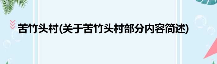 大家好,今天小方来说说一篇关于苦竹头村,关于苦竹头村部分内容简述的文章,那么现在就为大家来简单介绍下,希望对各位小伙伴们有所帮助。
