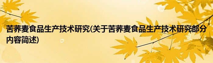 苦荞麦食品生产技术研究(关于苦荞麦食品生产技术研究部分内容简述)