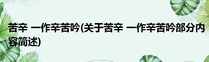 苦辛 一作辛苦吟(关于苦辛 一作辛苦吟部分内容简述)