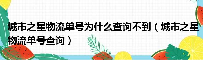 城市之星物流单号为什么查询不到(城市之星物流单号查询)