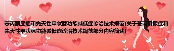 导读 大家好,今天小方来说说一篇关于苯丙酮尿症和先天性甲状腺功能减低症诊治技术规范,关于苯丙酮尿症和先天性甲状腺功能减低症诊治技术规范部