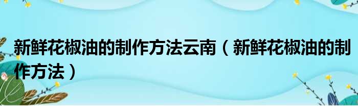 新鲜花椒油的制作方法云南(新鲜花椒油的制作方法)