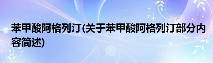 苯甲酸阿格列汀(关于苯甲酸阿格列汀部分内容简述)