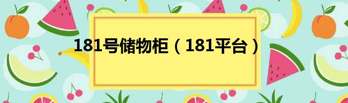 大家好,小活来为大家解答以上的问题。181号储物柜,181平台这个很多人还不知道,现在让我们一起来看看吧!