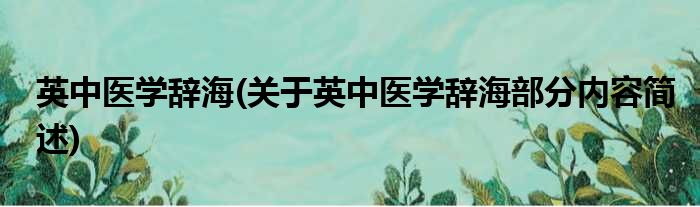 英中医学辞海(关于英中医学辞海部分内容简述)