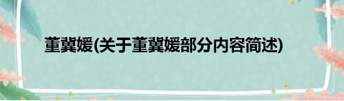 导读 大家好,今天小方来说说一篇关于董冀媛,关于董冀媛部分内容简述的文章,那么现在就为大家来简单介绍下,希望对各位小伙伴们有所帮助。