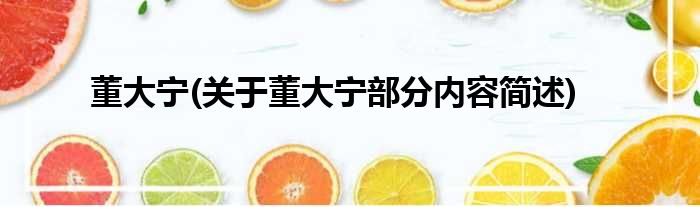 导读 大家好,今天小方来说说一篇关于董大宁,关于董大宁部分内容简述的文章,那么现在就为大家来简单介绍下,希望对各位小伙伴们有所帮助。