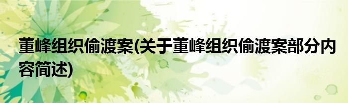董峰组织偷渡案(关于董峰组织偷渡案部分内容简述)