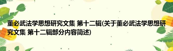 导读 大家好,今天小方来说说一篇关于董必武法学思想研究文集 第十二辑,关于董必武法学思想研究文集 第十二辑部分内容简述的文章,那么现在就