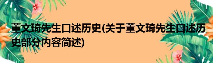 导读 大家好,今天小方来说说一篇关于董文琦先生口述历史,关于董文琦先生口述历史部分内容简述的文章,那么现在就为大家来简单介绍下,希望对各