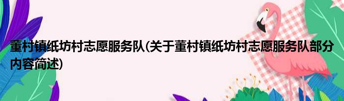 董村镇纸坊村志愿服务队(关于董村镇纸坊村志愿服务队部分内容简述)