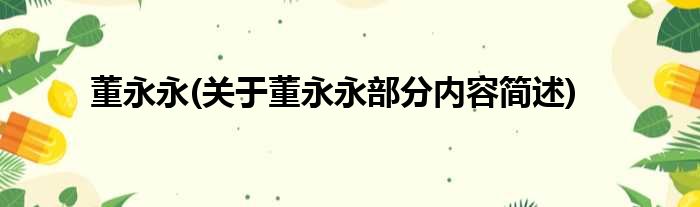 大家好,今天小方来说说一篇关于董永永,关于董永永部分内容简述的文章,那么现在就为大家来简单介绍下,希望对各位小伙伴们有所帮助。