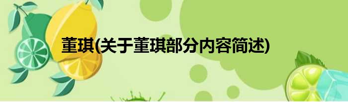 大家好,今天小方来说说一篇关于董琪,关于董琪部分内容简述的文章,那么现在就为大家来简单介绍下,希望对各位小伙伴们有所帮助。