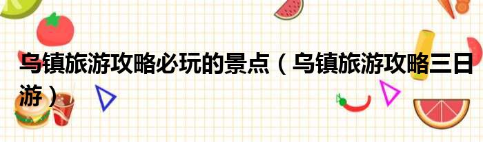 乌镇旅游攻略必玩的景点(乌镇旅游攻略三日游)