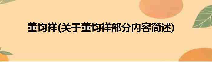 导读 大家好,今天小方来说说一篇关于董钧祥,关于董钧祥部分内容简述的文章,那么现在就为大家来简单介绍下,希望对各位小伙伴们有所帮助。