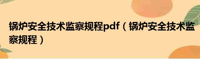 大家好,小活来为大家解答以上的问题。锅炉安全技术监察规程pdf,锅炉安全技术监察规程这个很多人还不知道,现在让我们一起来看看吧!