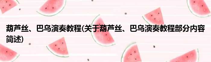 葫芦丝、巴乌演奏教程(关于葫芦丝、巴乌演奏教程部分内容简述)