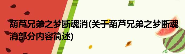 导读 大家好,今天小方来说说一篇关于葫芦兄弟之梦断魂消,关于葫芦兄弟之梦断魂消部分内容简述的文章,那么现在就为大家来简单介绍下,希望对各
