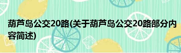 葫芦岛公交20路(关于葫芦岛公交20路部分内容简述)