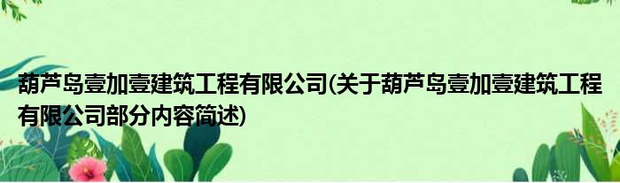 葫芦岛壹加壹建筑工程有限公司(关于葫芦岛壹加壹建筑工程有限公司部分内容简述)