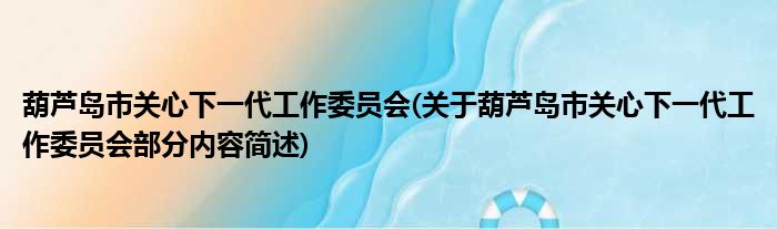葫芦岛市关心下一代工作委员会(关于葫芦岛市关心下一代工作委员会部分内容简述)