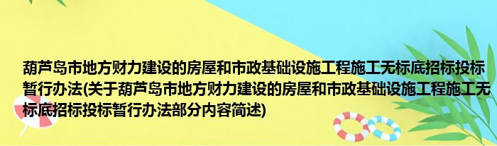 葫芦岛市地方财力建设的房屋和市政基础设施工程施工无标底招标投标暂行办法(关于葫芦岛市地方财力建设的房屋和市政基础设施工程施工无标底招标投标暂行办法部分内容简述)