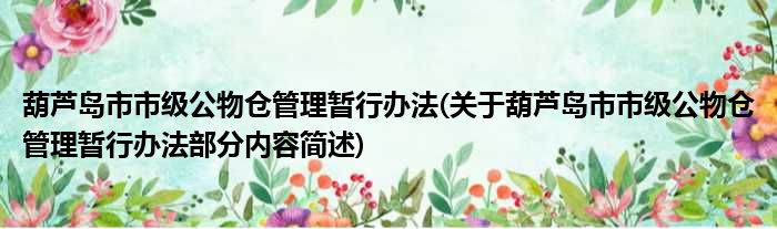 葫芦岛市市级公物仓管理暂行办法(关于葫芦岛市市级公物仓管理暂行办法部分内容简述)
