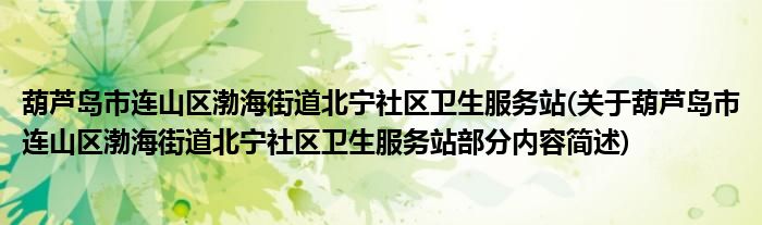 葫芦岛市连山区渤海街道北宁社区卫生服务站(关于葫芦岛市连山区渤海街道北宁社区卫生服务站部分内容简述)