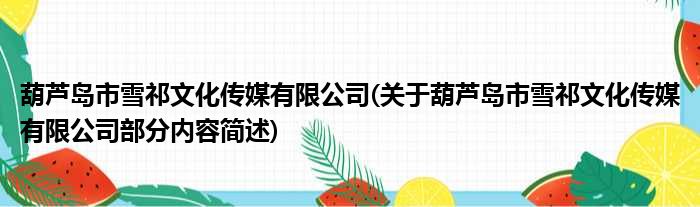 葫芦岛市雪祁文化传媒有限公司(关于葫芦岛市雪祁文化传媒有限公司部分内容简述)