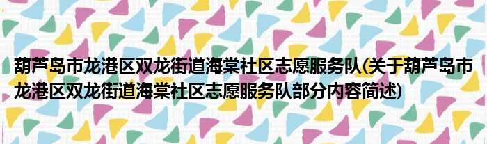 葫芦岛市龙港区双龙街道海棠社区志愿服务队(关于葫芦岛市龙港区双龙街道海棠社区志愿服务队部分内容简述)