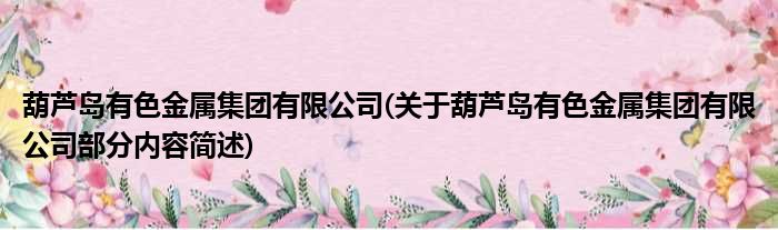 导读 大家好,今天小方来说说一篇关于葫芦岛有色金属集团有限公司,关于葫芦岛有色金属集团有限公司部分内容简述的文章,那么现在就为大家来简单