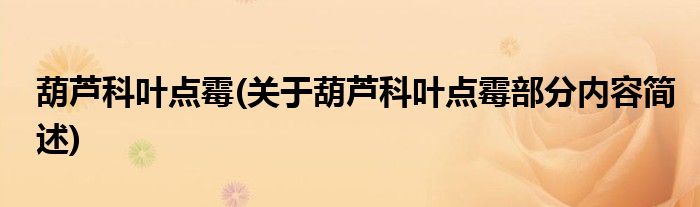 葫芦科叶点霉(关于葫芦科叶点霉部分内容简述)
