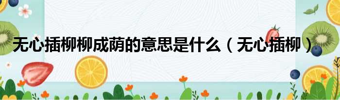 导读 大家好,小活来为大家解答以上的问题。无心插柳柳成荫的意思是什么,无心插柳这个很多人还不知道,现在让我们一起来看看吧!1、有意栽花花不