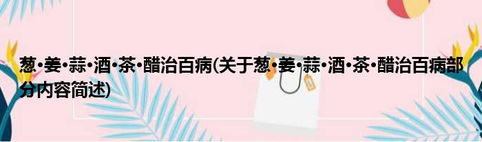 导读 大家好,今天小方来说说一篇关于葱·姜·蒜·酒·茶·醋治百病,关于葱·姜·蒜·酒·茶·醋治百病部分内容简述的文章,那么现在就为大家来