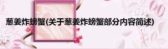 大家好,今天小方来说说一篇关于葱姜炸螃蟹,关于葱姜炸螃蟹部分内容简述的文章,那么现在就为大家来简单介绍下,希望对各位小伙伴们有所帮助。