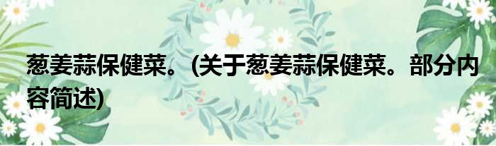 葱姜蒜保健菜。(关于葱姜蒜保健菜。部分内容简述)
