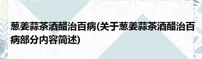 导读 大家好,今天小方来说说一篇关于葱姜蒜茶酒醋治百病,关于葱姜蒜茶酒醋治百病部分内容简述的文章,那么现在就为大家来简单介绍下,希望对各