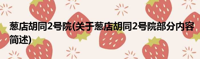 葱店胡同2号院(关于葱店胡同2号院部分内容简述)