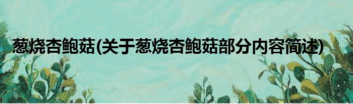 葱烧杏鲍菇(关于葱烧杏鲍菇部分内容简述)