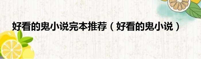 好看的鬼小说完本推荐(好看的鬼小说)