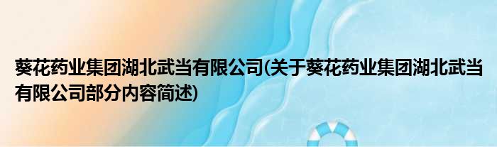 葵花药业集团湖北武当有限公司(关于葵花药业集团湖北武当有限公司部分内容简述)