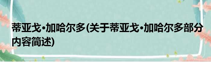 大家好,今天小方来说说一篇关于蒂亚戈·加哈尔多,关于蒂亚戈·加哈尔多部分内容简述的文章,那么现在就为大家来简单介绍下,希望对各位小伙伴们有所帮助。