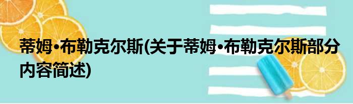 蒂姆·布勒克尔斯(关于蒂姆·布勒克尔斯部分内容简述)
