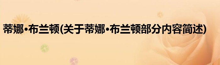 导读 大家好,今天小方来说说一篇关于蒂娜·布兰顿,关于蒂娜·布兰顿部分内容简述的文章,那么现在就为大家来简单介绍下,希望对各位小伙伴们有