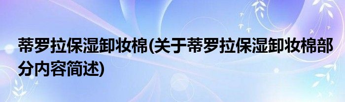 蒂罗拉保湿卸妆棉(关于蒂罗拉保湿卸妆棉部分内容简述)