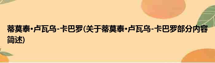 蒂莫泰·卢瓦乌-卡巴罗(关于蒂莫泰·卢瓦乌-卡巴罗部分内容简述)