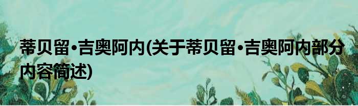 导读 大家好,今天小方来说说一篇关于蒂贝留·吉奥阿内,关于蒂贝留·吉奥阿内部分内容简述的文章,那么现在就为大家来简单介绍下,希望对各位小