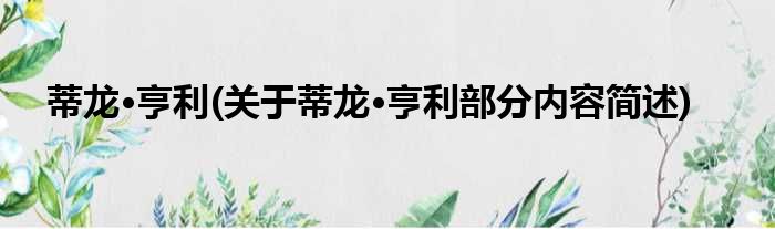 蒂龙·亨利(关于蒂龙·亨利部分内容简述)