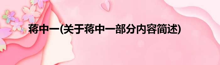 导读 大家好,今天小方来说说一篇关于蒋中一,关于蒋中一部分内容简述的文章,那么现在就为大家来简单介绍下,希望对各位小伙伴们有所帮助。